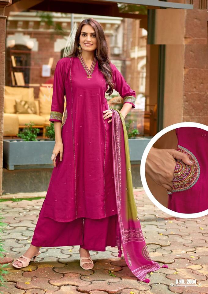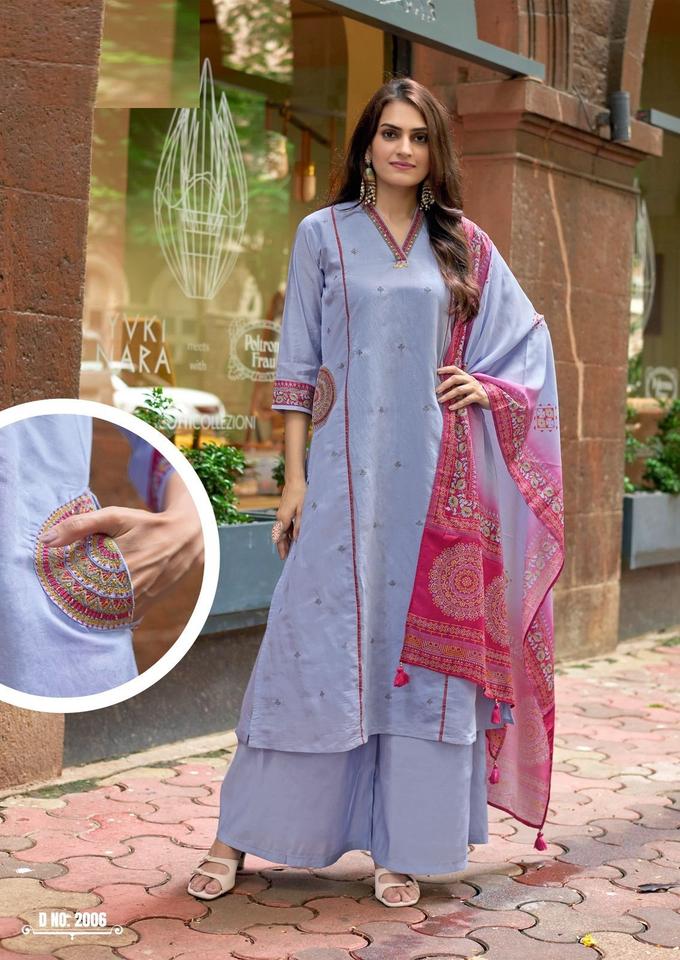 Kurti en viscose Barline et broderies à la main avec bas de robe en viscose Barline et dupatta en viscose Barline à imprimé chanderi pur