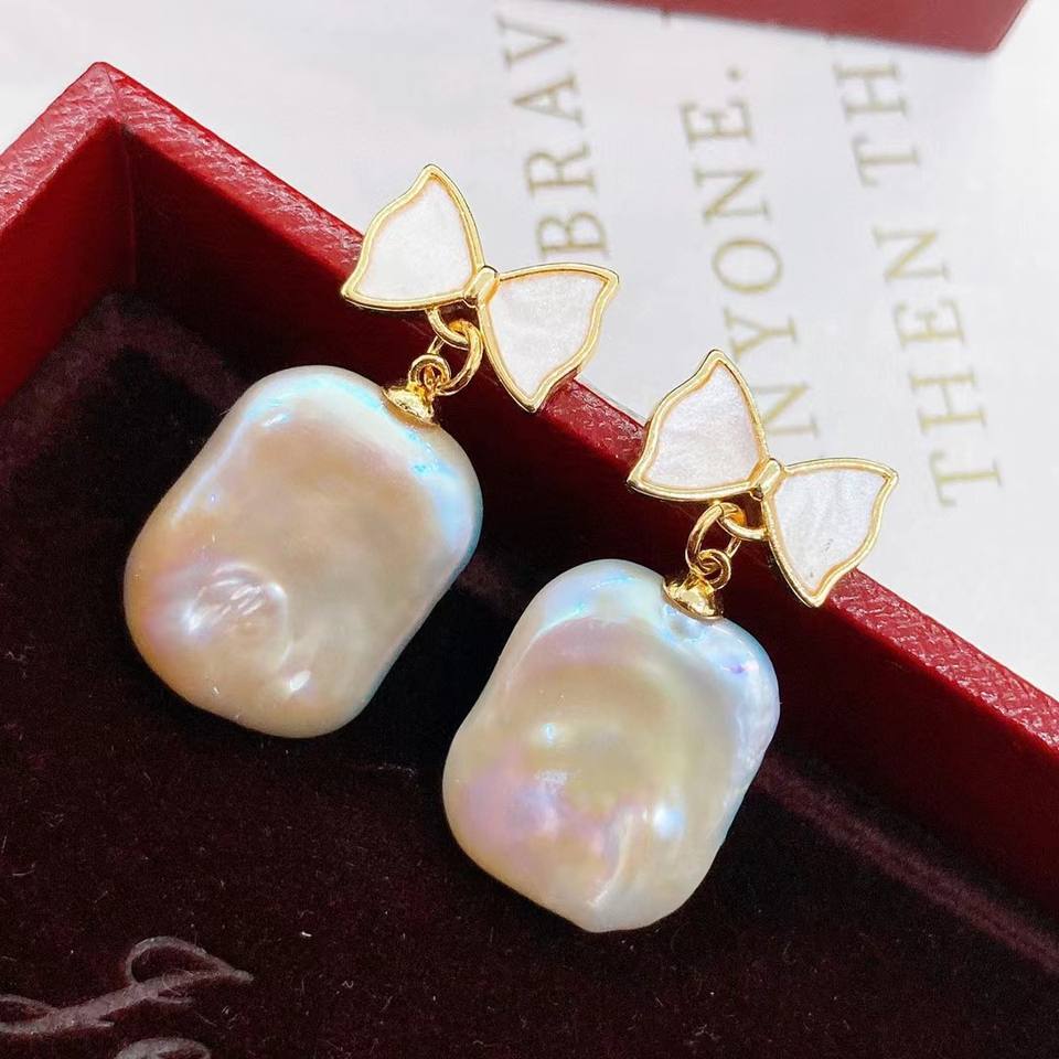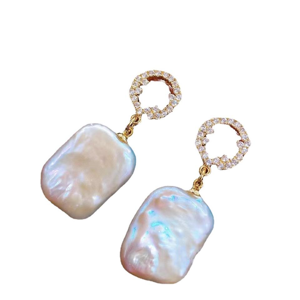 Boucles d'oreilles pendantes en perles d'eau douce baroques, rectangulaires, style haut de gamme aristocratique