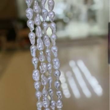 Baroque Freshwater Pearl Necklace Natural White with High Gloss Adjustable Chain French Vintage Style Bright Alien-like Beauty