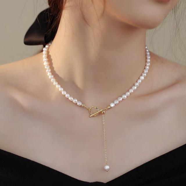 Baroque Natural Freshwater Pearl Necklace Women French Style Temperament Simple OT Buckle Collarbone Chain High-End Wenchi China