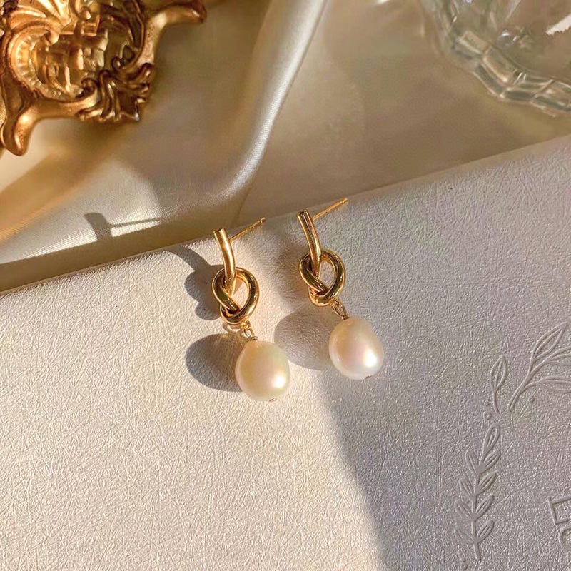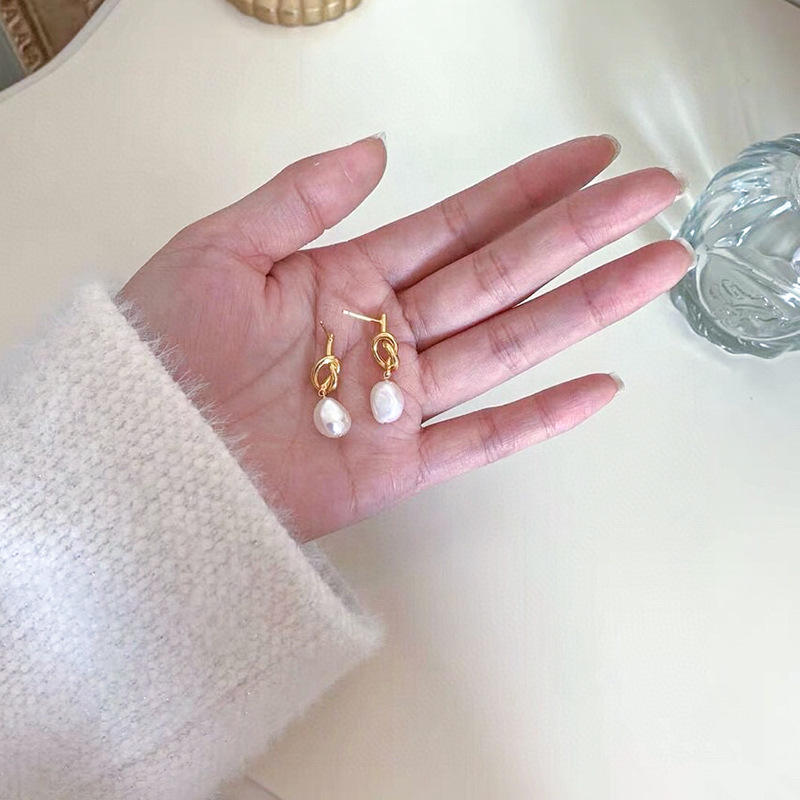14K gold knotted earrings:s925 Silver needle