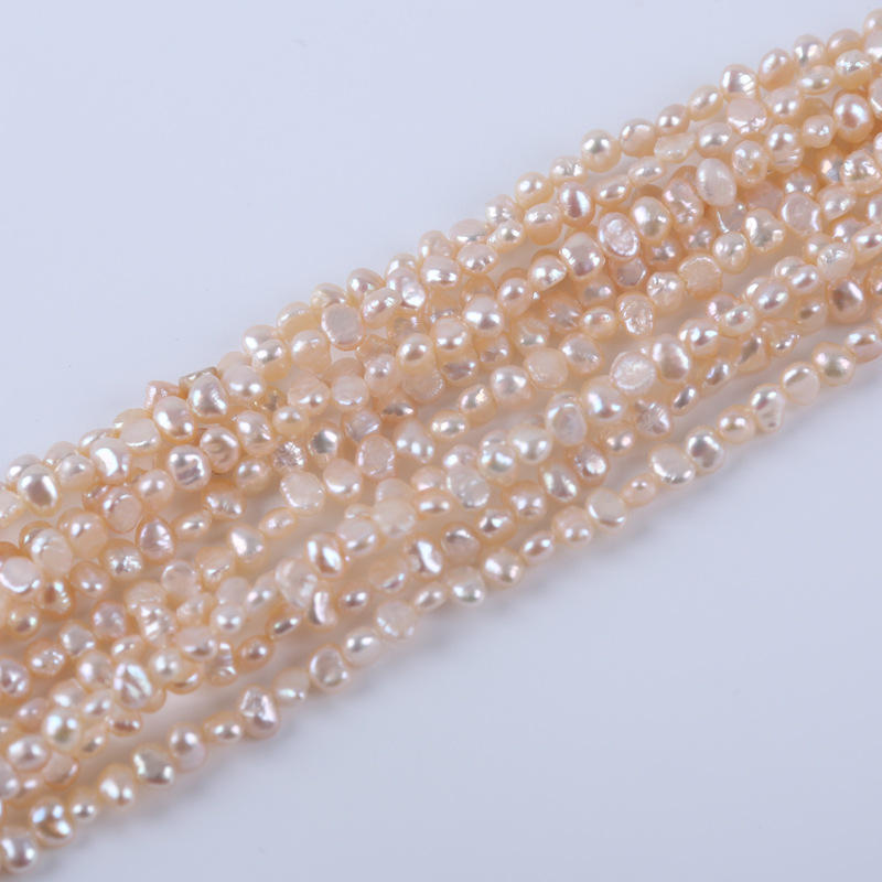 Baroque Shaped Natural Freshwater Pearl 18cm3-4mm Two-Sided Glossy Side Hole Semi-Finished String in White and Pink