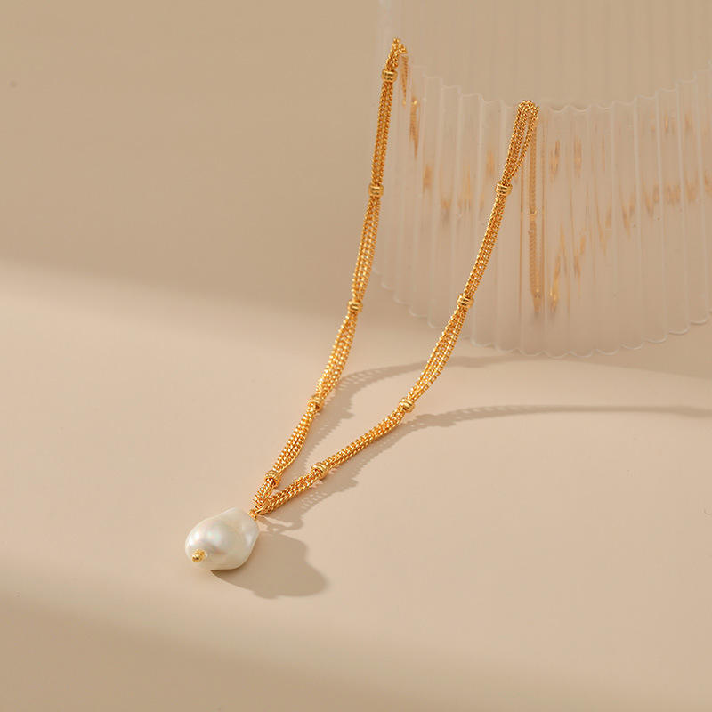 Collier pendentif en perles irrégulières de style baroque, design français haut de gamme, avec chaîne de clavicule pour pulls
