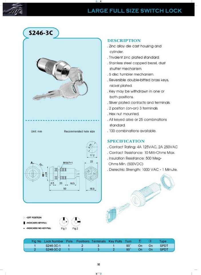 Plaqué zinc trivalentSerrure de commutateur principal