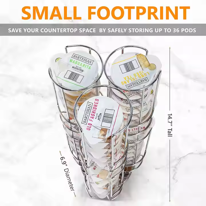 Stockage de capsules barthésiennes grande capacité 36 pièces support de dosettes de cocktail à roulement silencieux à 360 ° présentoir de dosettes bartésiennes