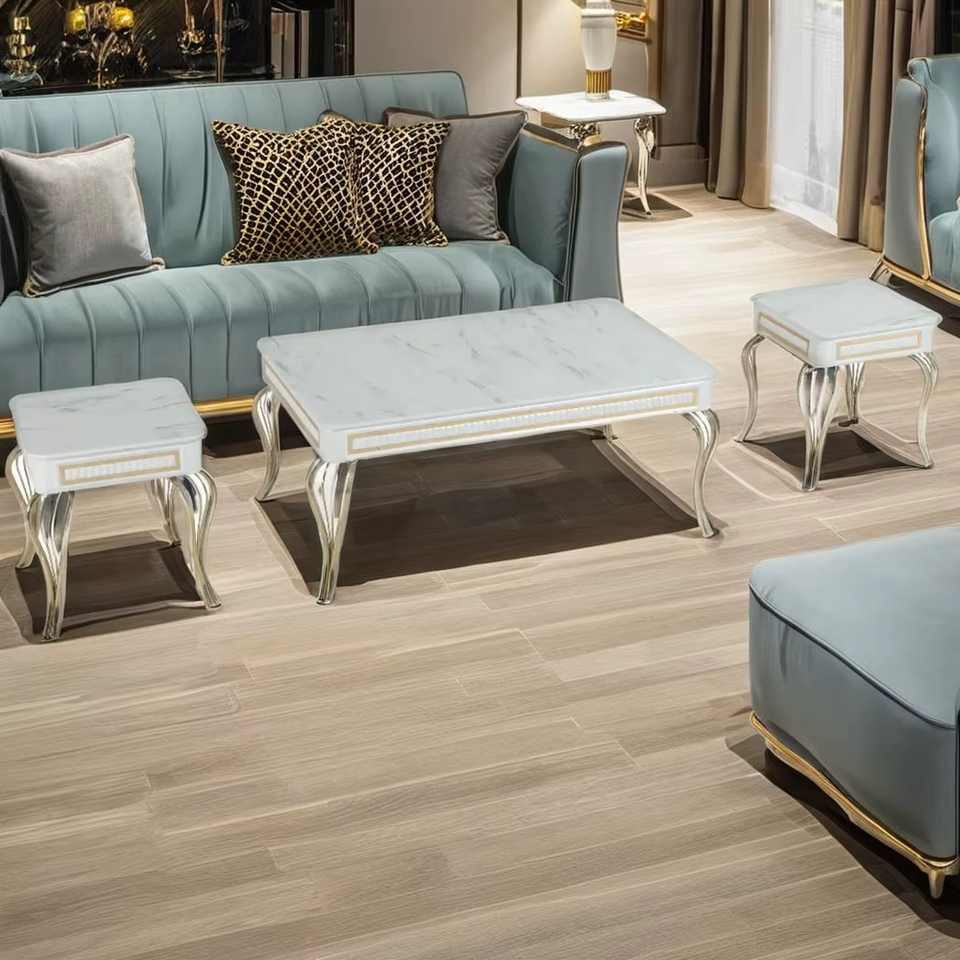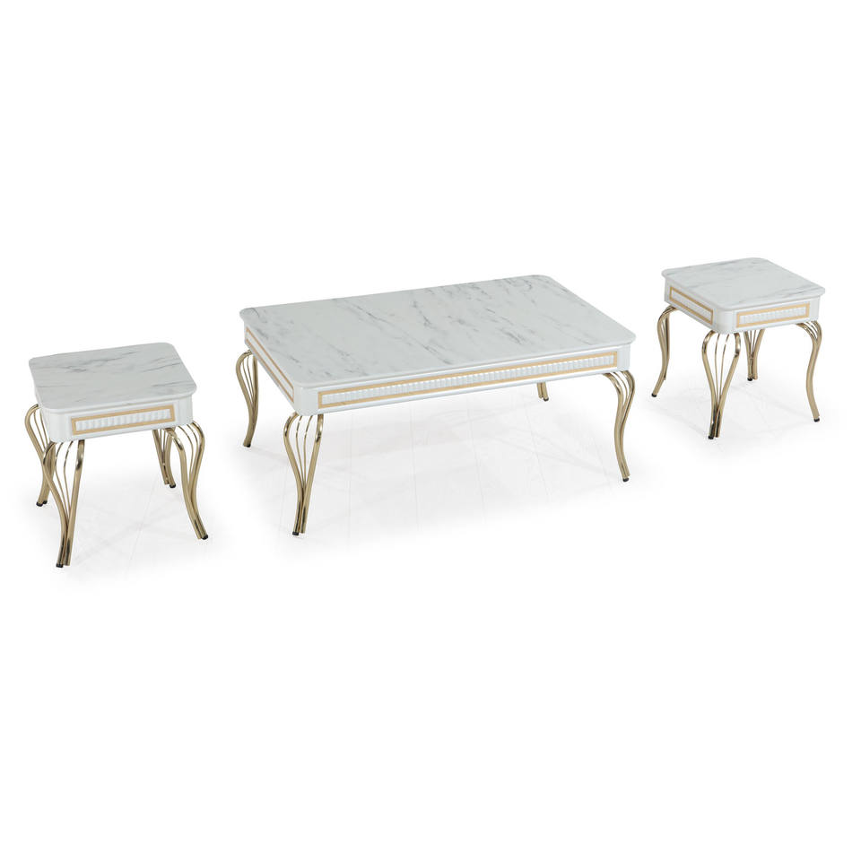 Ensemble de table basse Basak, plateau en marbre, pieds en métal, style moderne antique, meubles de salon