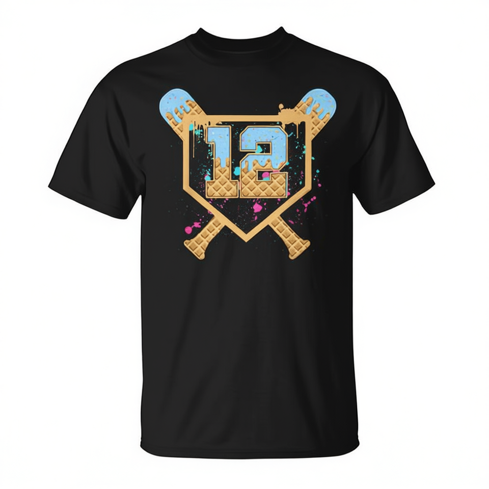 T-shirt de baseball pour 12e anniversaire, motif goutte de crème glacée numéro 12, pour enfants, manches courtes, col rond, unisexe, pour sports et jeux