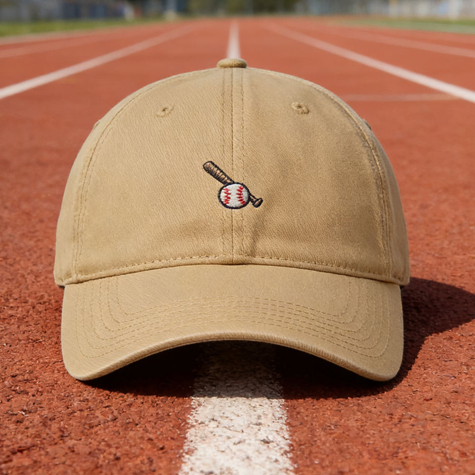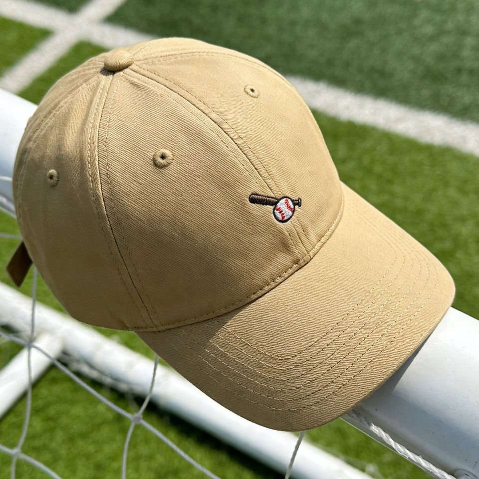 Casquette de baseball kaki brodée de bâton et de balle - Casquette de soleil ajustable à 6 panneaux pour le sport et les activités de plein air