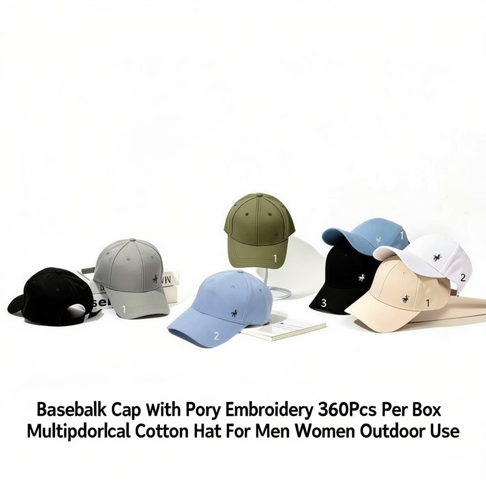 Casquette de baseball avec broderie de poney, 360 pièces par boîte, chapeau en coton multicolore pour hommes et femmes, utilisation en extérieur