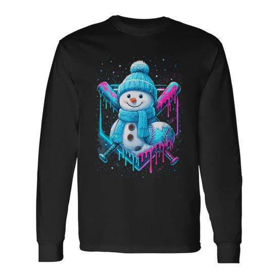 T-shirt à manches longues pour garçons, motif bonhomme de neige, baseball, design amusant pour l'hiver