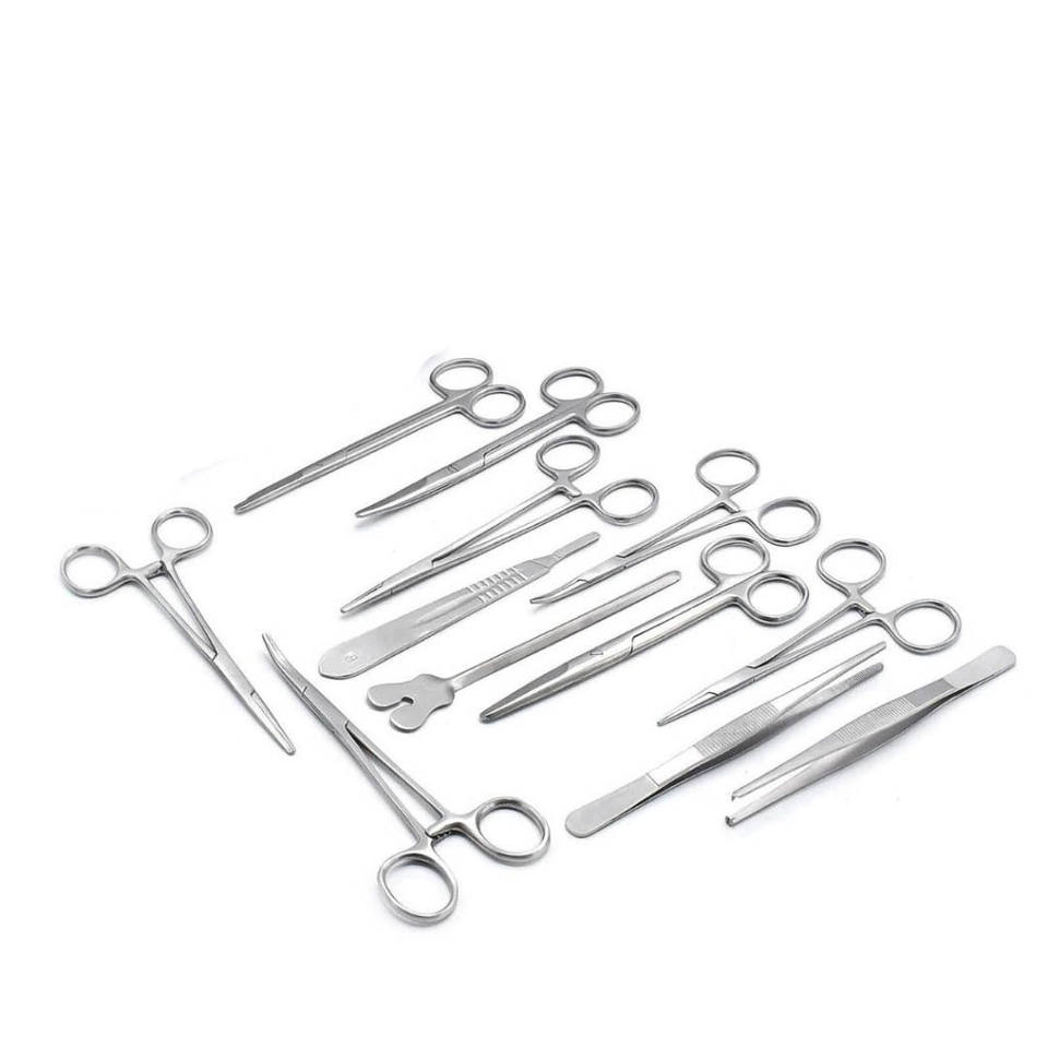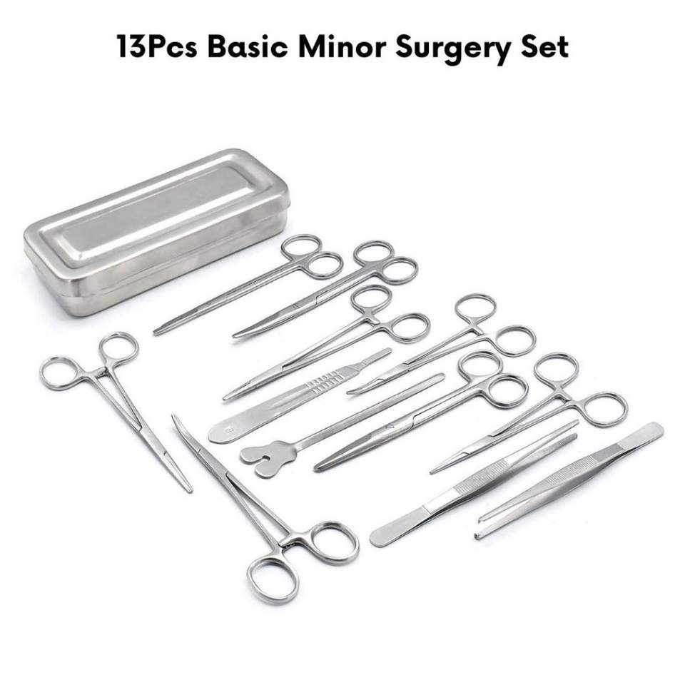 Kit basique de chirurgie mineure de 13 pièces Ensemble d'instruments chirurgicaux en métal Outils en acier inoxydable pour étudiants en médecine Logo personnalisé OEM