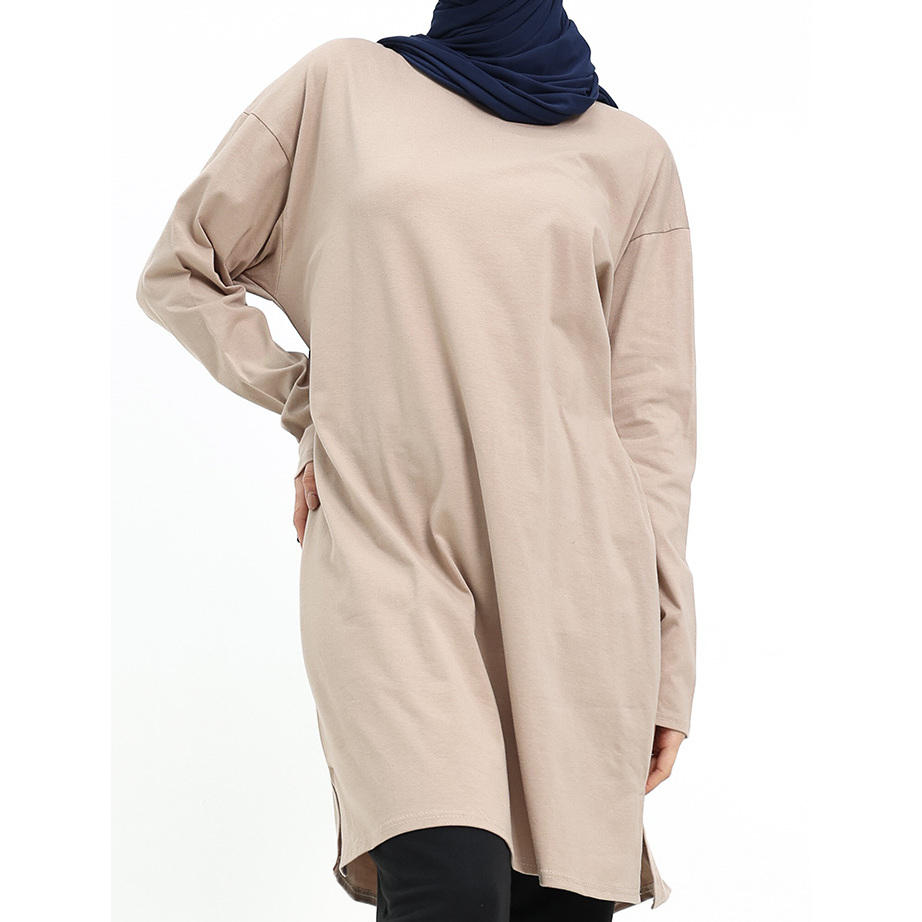 T-shirt long beige basique taille XL 100% coton avec élasthanne Tissu jersey respirant Style décontracté Uni Imprimé uni
