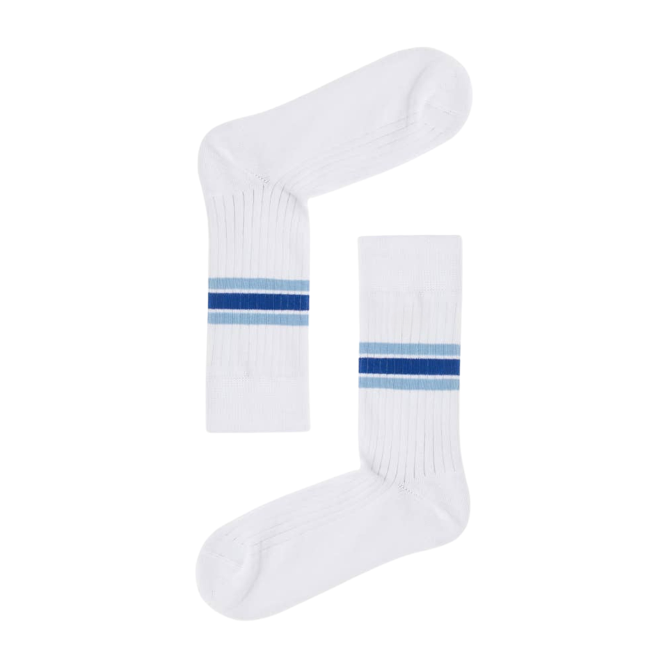 JZVINA Retro Blue Striped Crew Chaussettes pour hommes Stretch Ribbed Cuff Respirant et confortable Casual Daily Sport Wear
