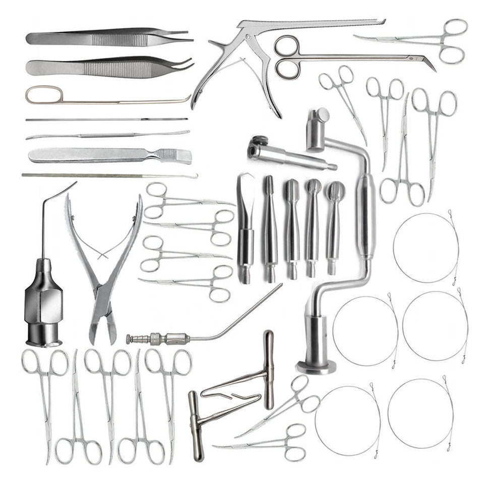 Ensemble d'instruments chirurgicaux de neurochirurgie et de chirurgie de la colonne vertébrale en acier inoxydable de 98 pièces pour craniotomie de base