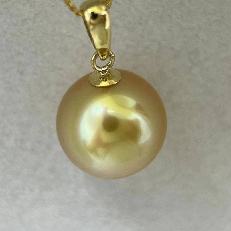 Pendentif en perle d'or de Nanyang de base, niveau débutant, or 18 carats, boucle en forme de grain de melon, avec des breloques en perle d'or ronde épaisse de 11-12 mm