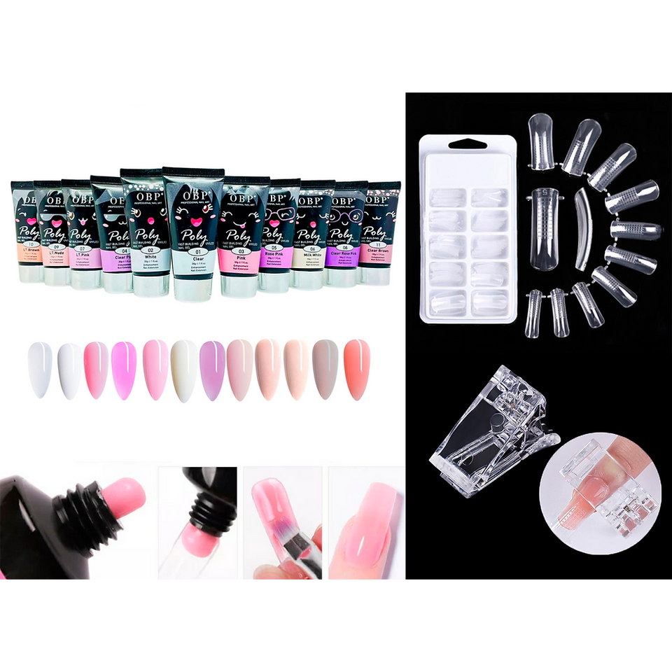 Kit de base pour ongles à paillettes Polygel 100 avec double embout pour fournitures d'onglerie