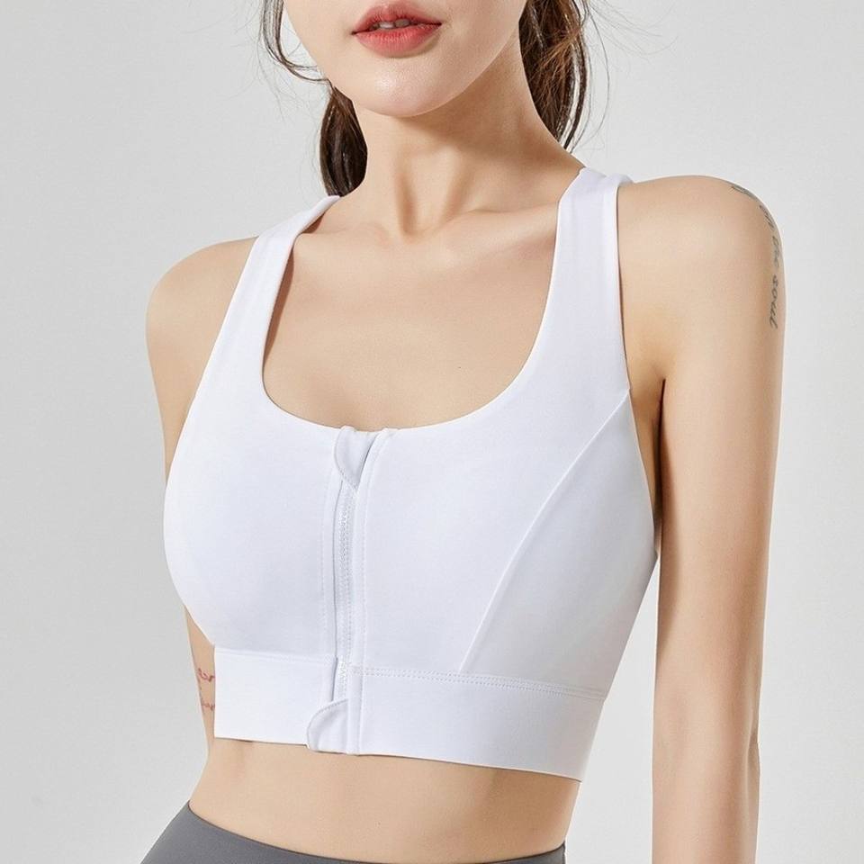 Soutien-gorge de sport basique à fermeture éclair frontale, anti-affaissement, à coussinet unique, pour yoga et entraînement en salle de sport, antichoc
