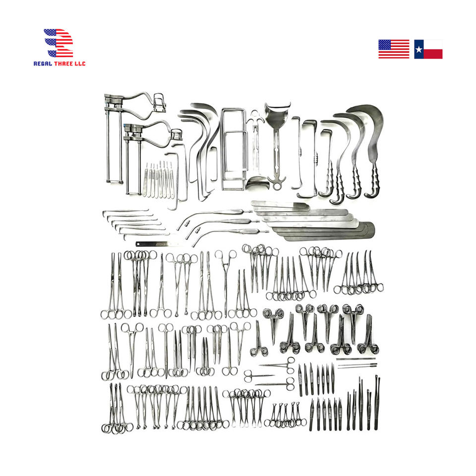 Ensemble d'instruments chirurgicaux de base pour laparotomie de 197 pièces/Kit de chirurgie abdominale pour équipement de chirurgie mineure Ensemble complet de chirurgie