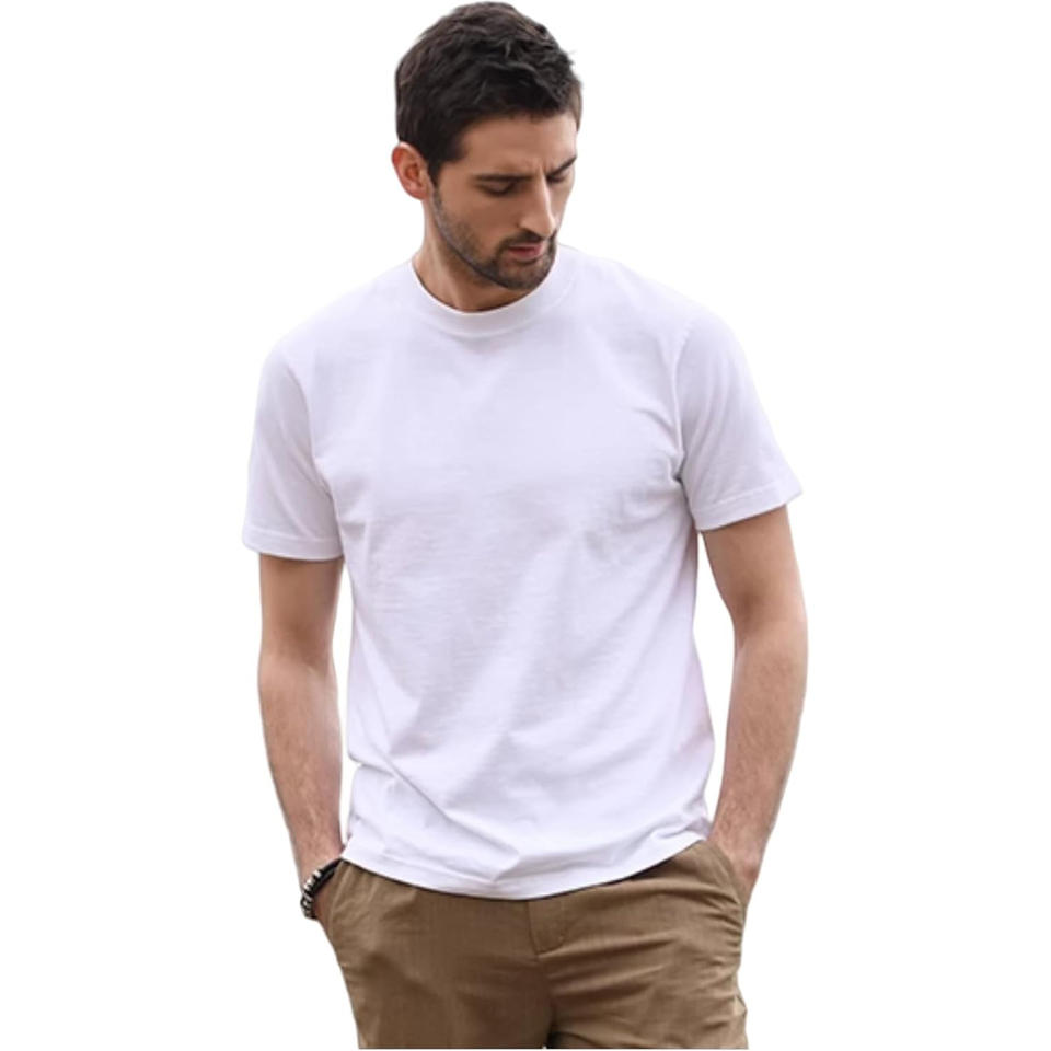 T-shirt basique pour homme en coton et élasthanne tricoté, col rond, coupe régulière, respirant, écologique, séchage rapide, anti-froissement, décontracté, pour tous les jours
