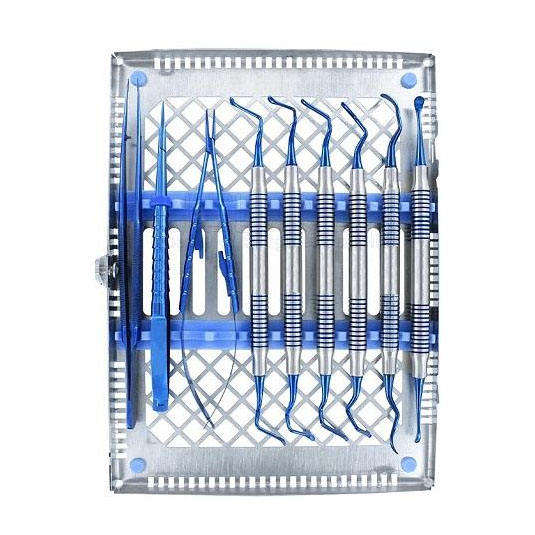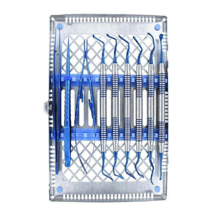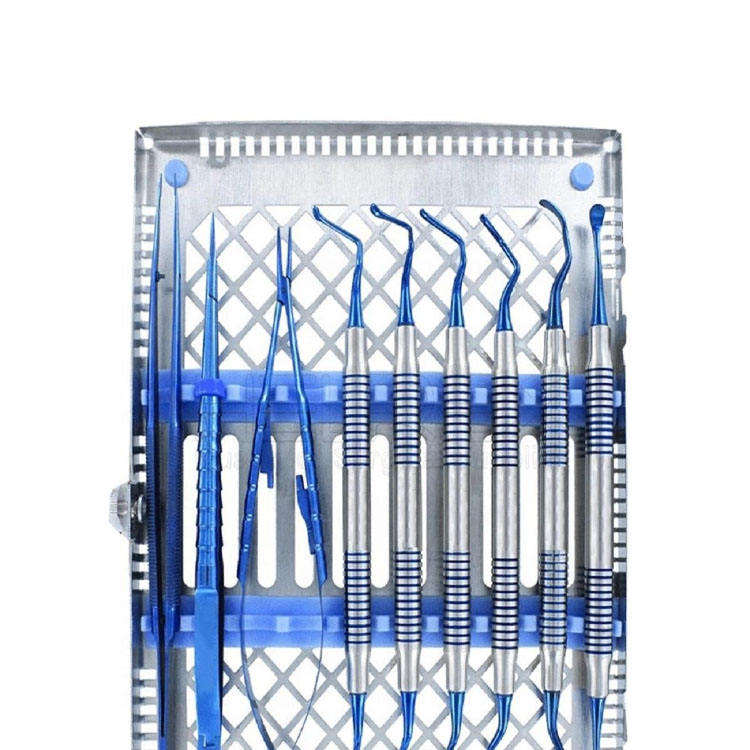 Kit de micro-chirurgie buccale de base, ensemble de chirurgie parodontale, instruments dentaires manuels en acier bleu