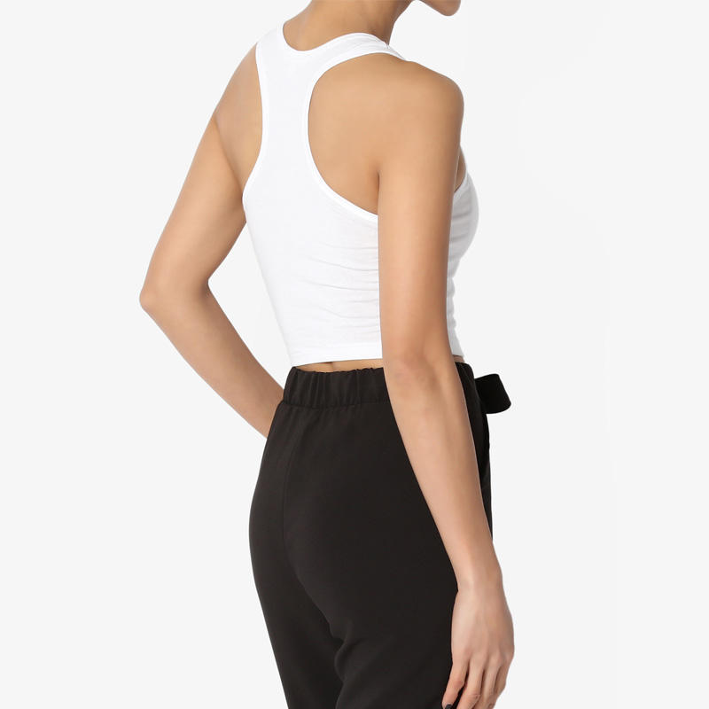 Débardeur court basique à dos nageur, sans manches, col rond, uni, pour femme