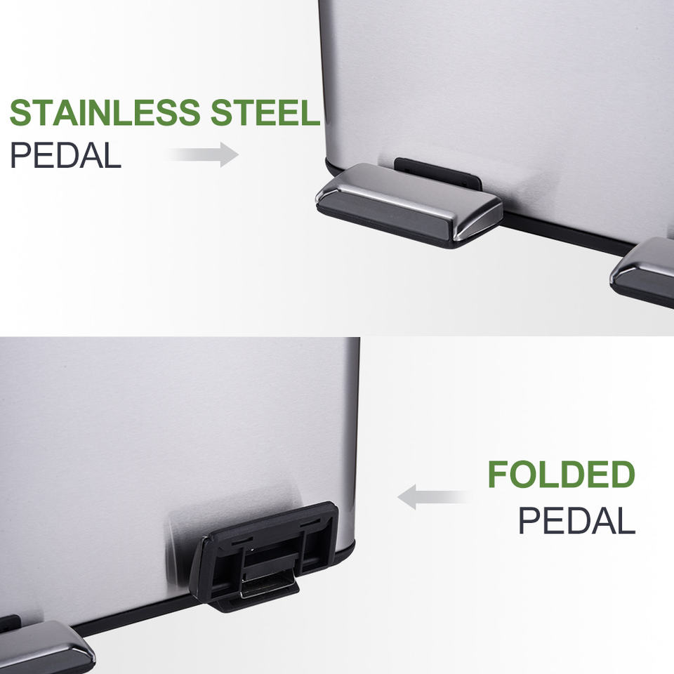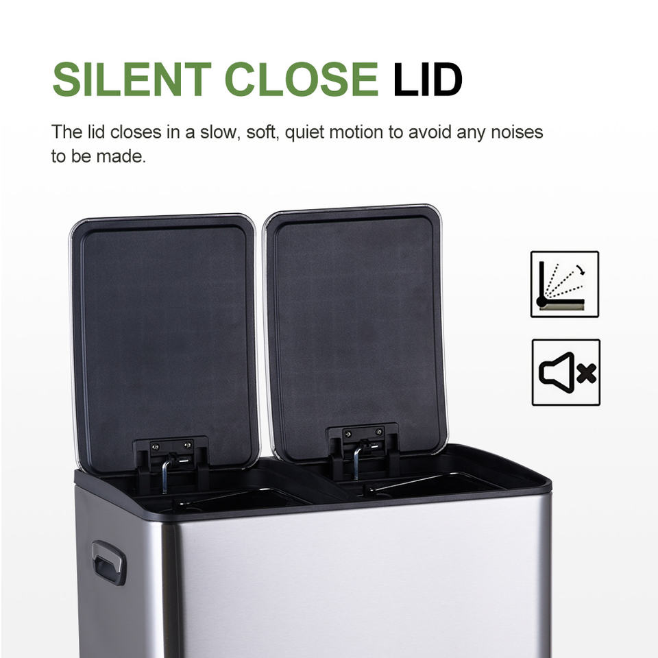 Poubelles de style basique en acier inoxydable de grande taille à 2 compartiments 60L avec fermeture en douceur