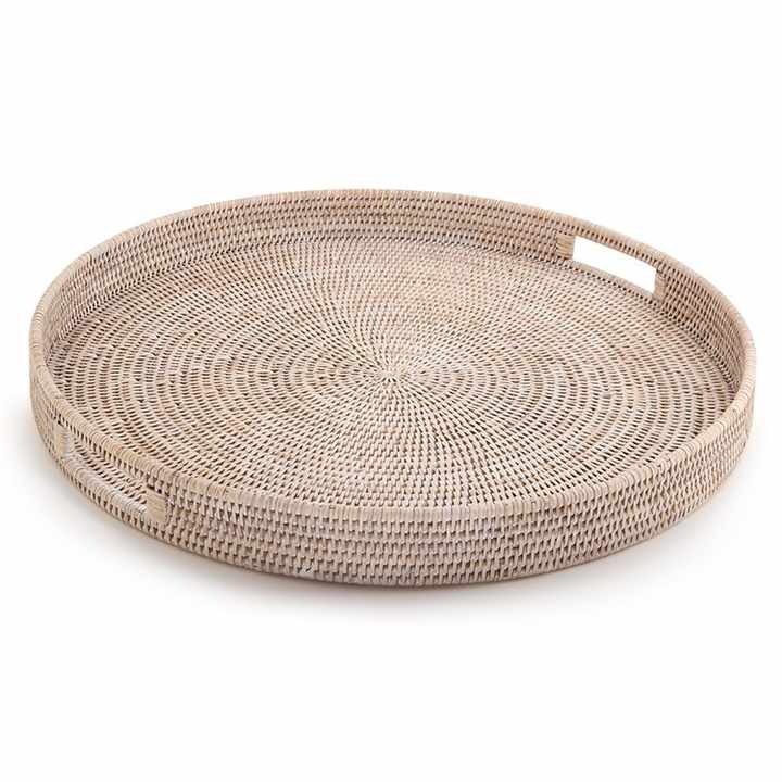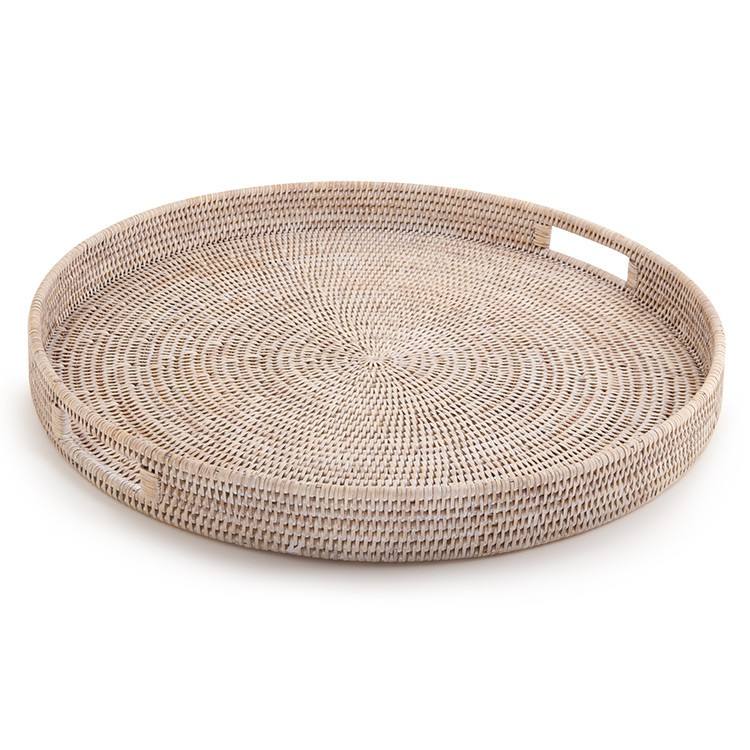 Plateau de service rond en rotin bohème fait à la main avec poignées produits en vrac