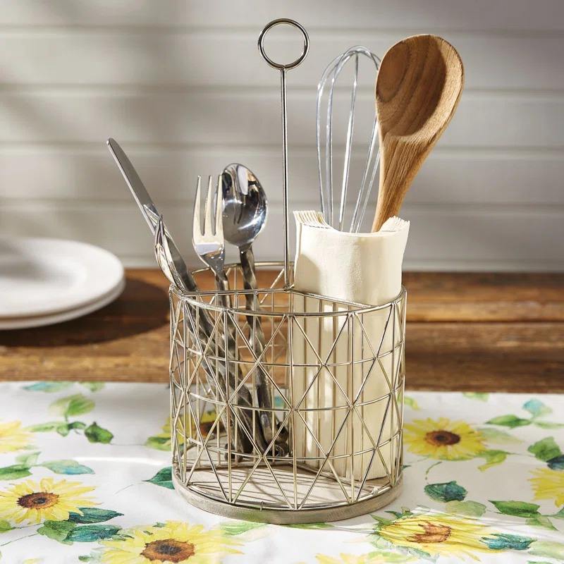 Porte-couverts de base en fil métallique avec base en bois, idéal pour un usage quotidien à la maison, en cuisine et pour la restauration, support pratique fabriqué en Inde