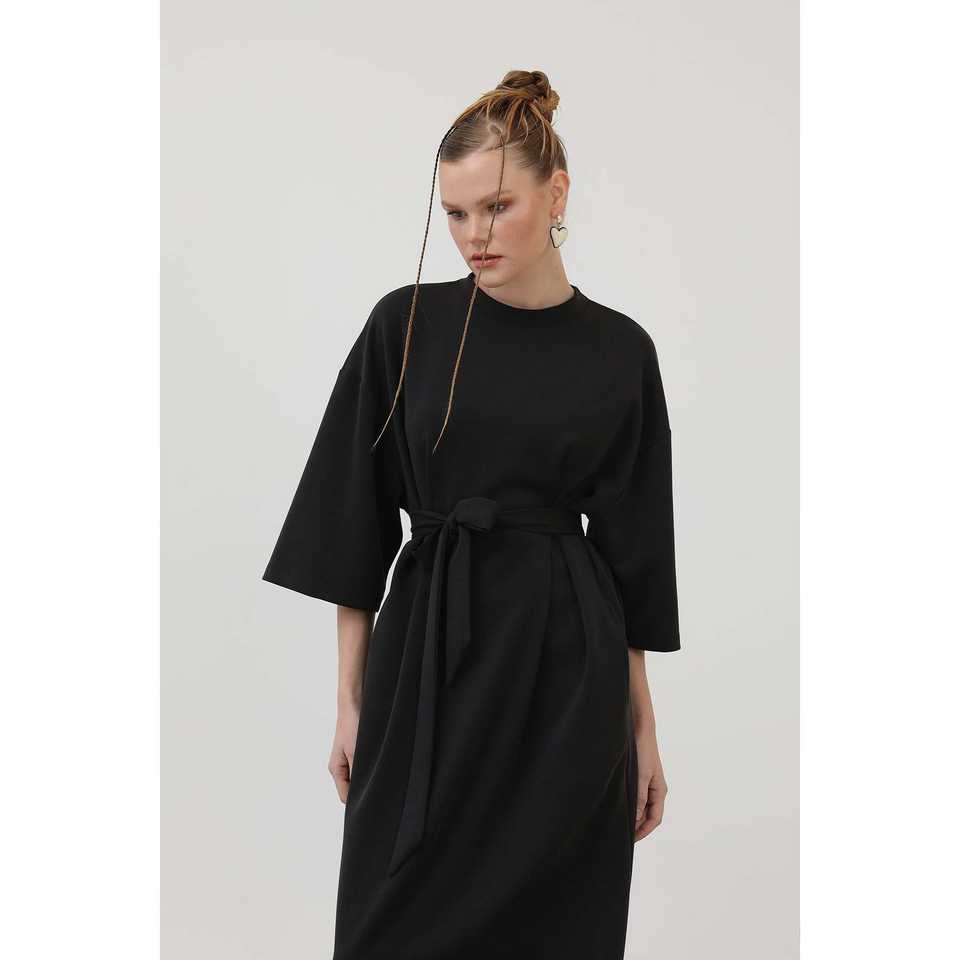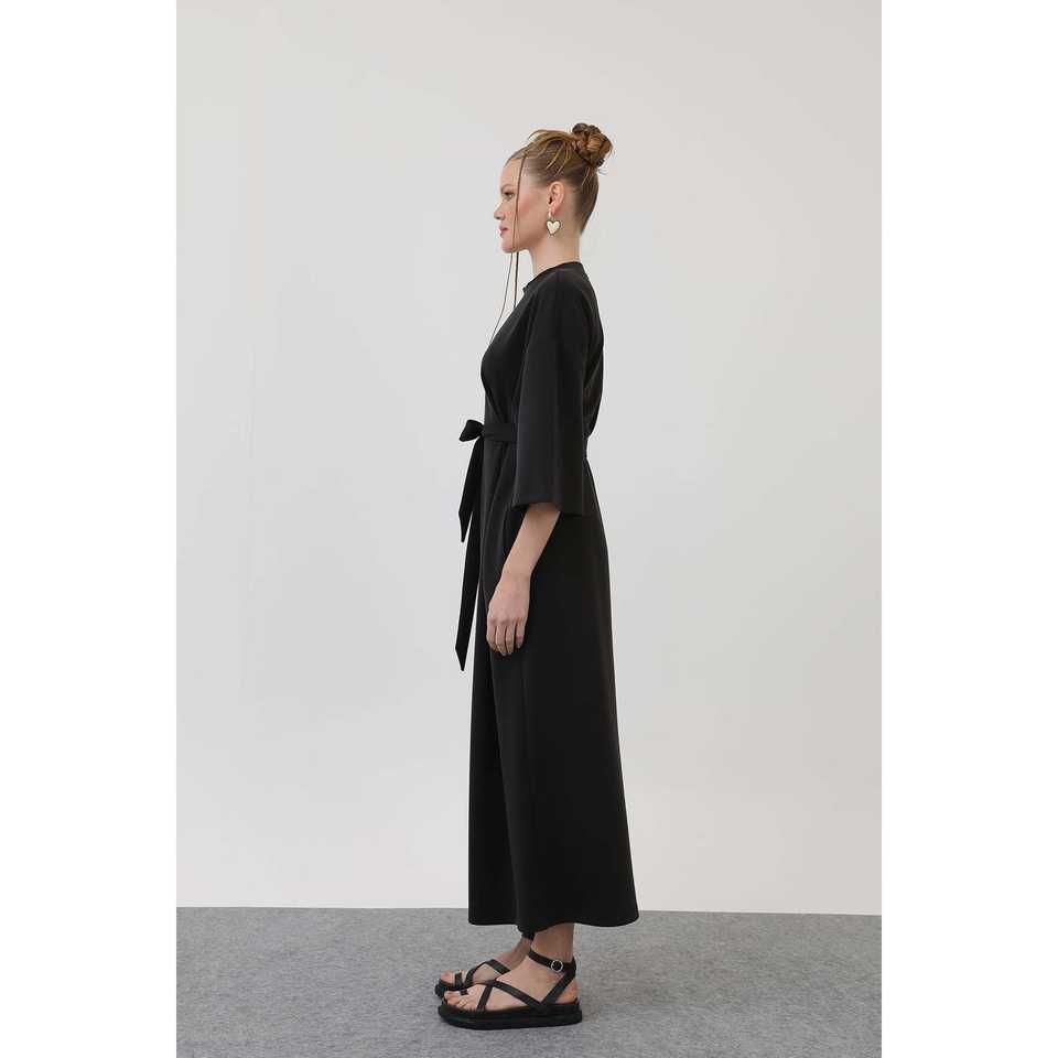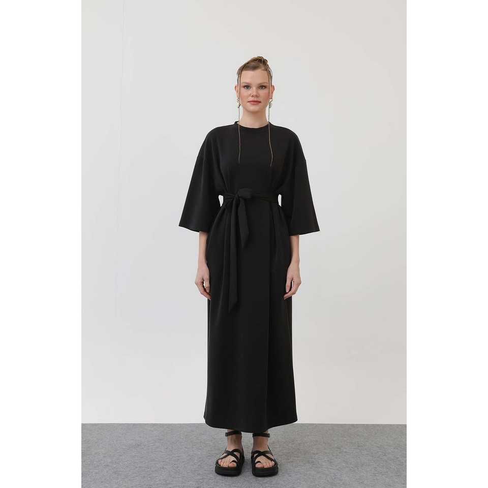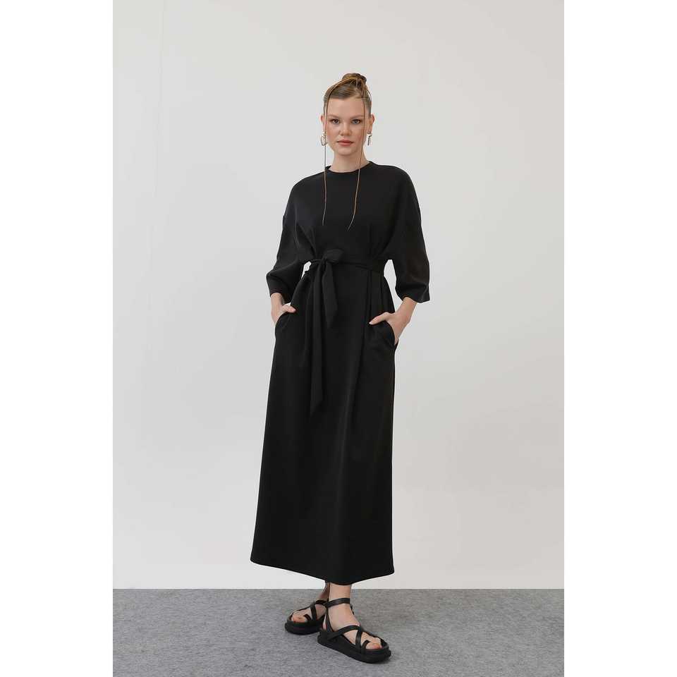 Robe de soirée basique pour femme, coupe trapèze, avec ceinture, col rond, taille naturelle, confortable, couleur vison