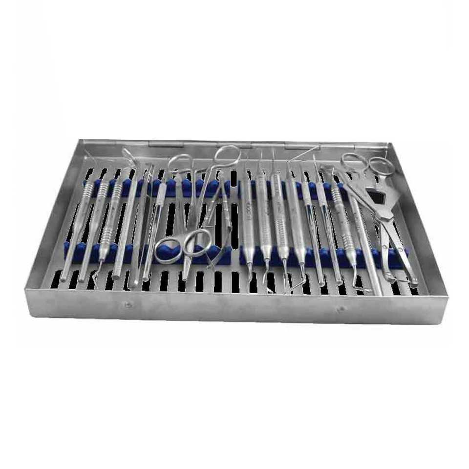 Kit de chirurgie implantaire de base avec cassette, instruments chirurgicaux dentaires en acier inoxydable, ensemble d'outils d'implantation
