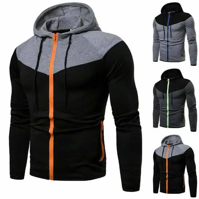 Basics Sweat-shirts à capuche pour hommes à deux panneaux, 100% coton, manches longues, fermeture éclair, respirant