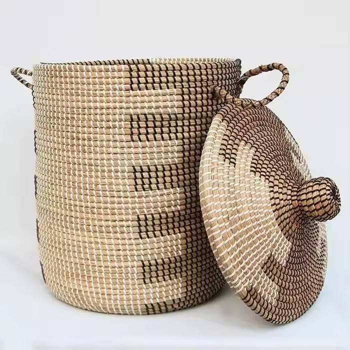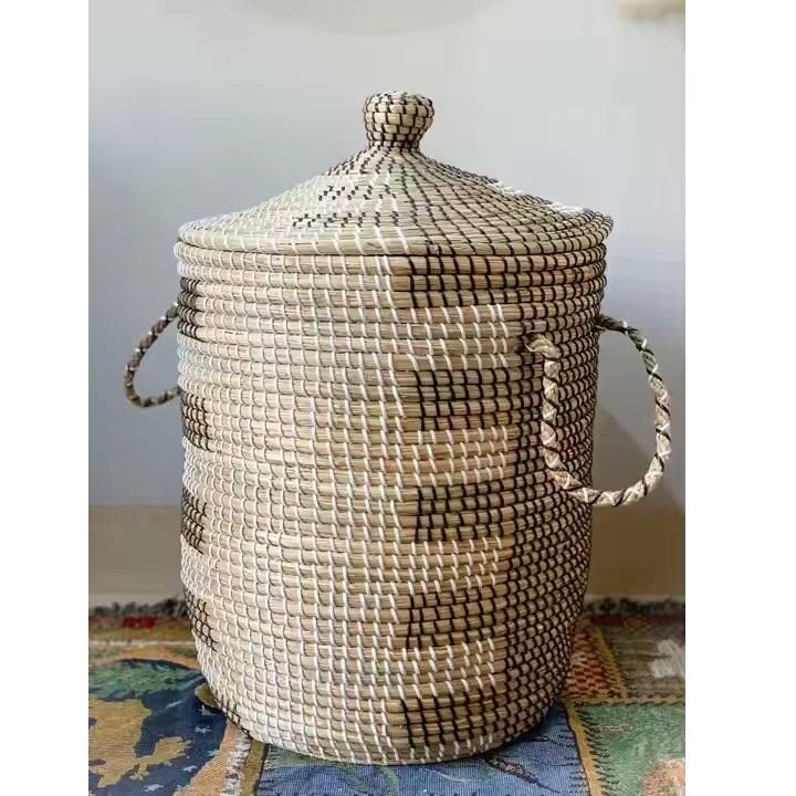 Paniers en jonc de mer et jacinthe d'eau du Vietnam, naturels ou personnalisables, ronds, rectangulaires ou carrés, flexibles, écologiques, pour vêtements