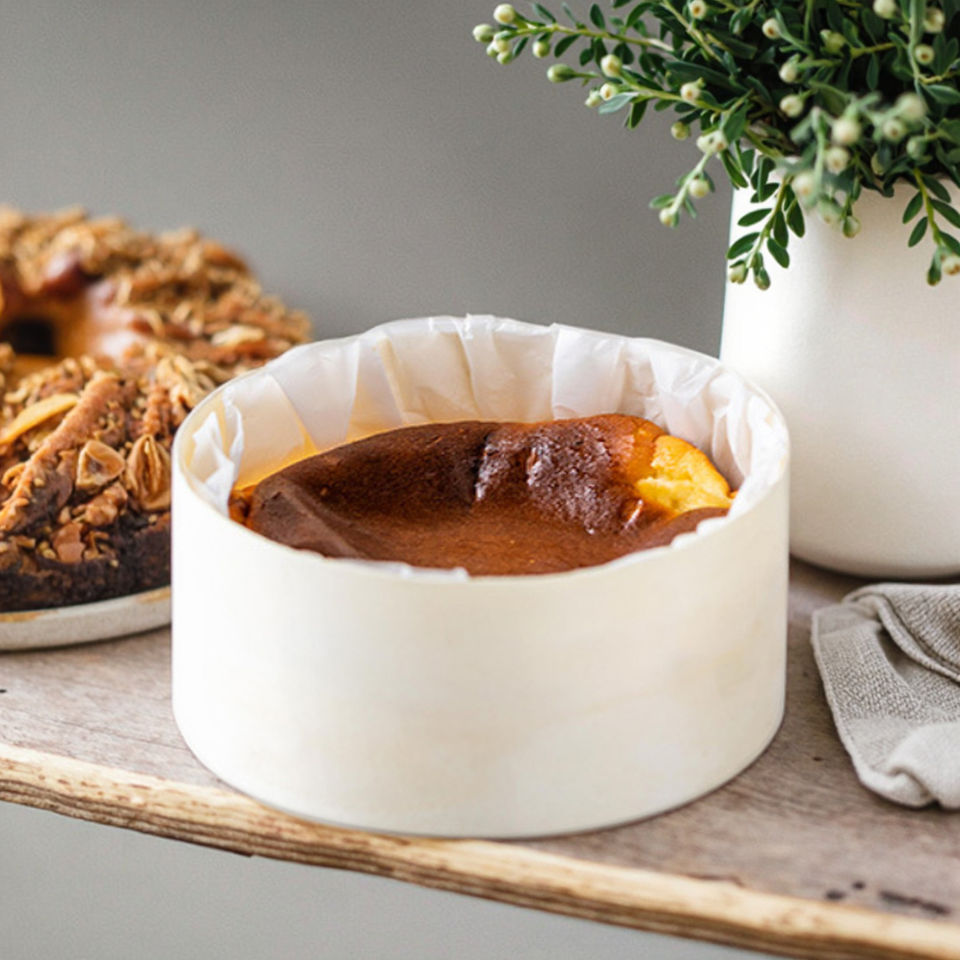 Boîte en bois de peuplier écologique pour gâteau basque, de forme ronde, idéale pour la pâtisserie et les décorations de fêtes et de mariages