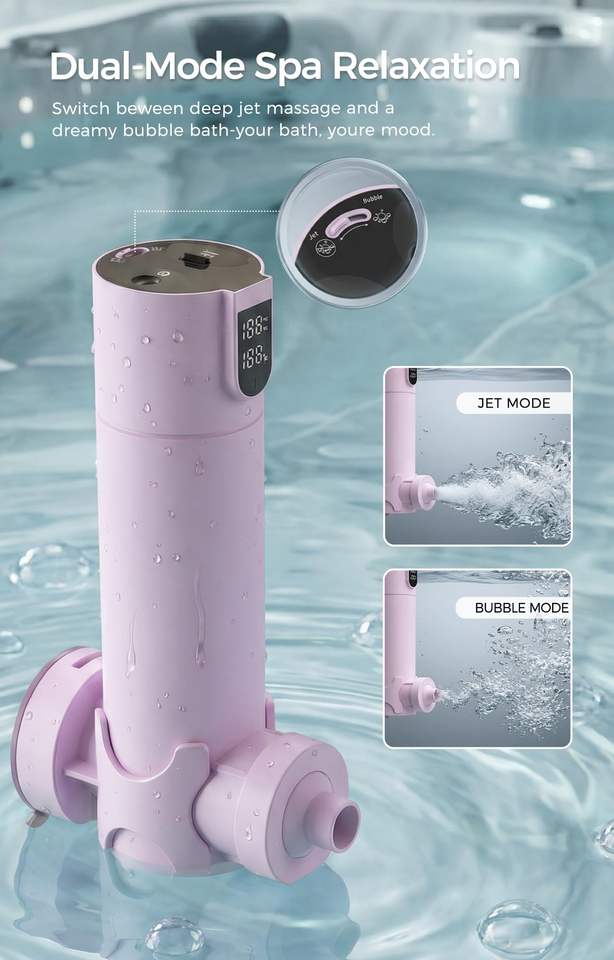 Jet de Bain pour Spa, Jet de Bain Portable Rechargeable Sans Fil pour Baignoire avec Verrouillage par Aspiration, Mode Bulles