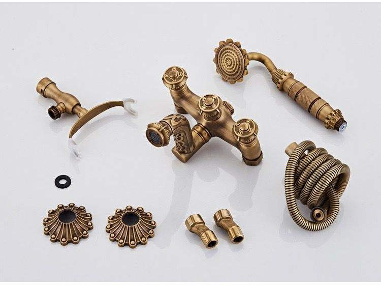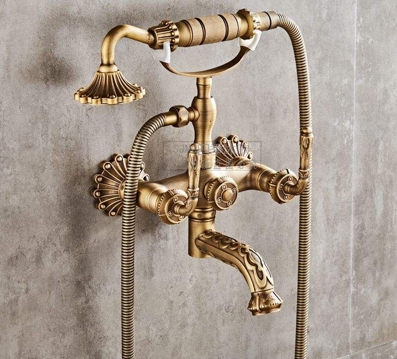 Robinet de baignoire douche en laiton, robinet mural de la baignoire-douche mitigeur de douche en laiton, baignoire de cuisine en bronze antique, robinet de cuisine avec douchette de téléphone