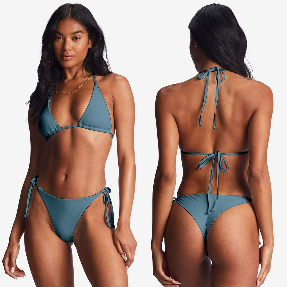 Maillot de bain couleur unie et dessin animé imprimé triangle soutien-gorge 2 pièces bikini maillot de bain ensemble