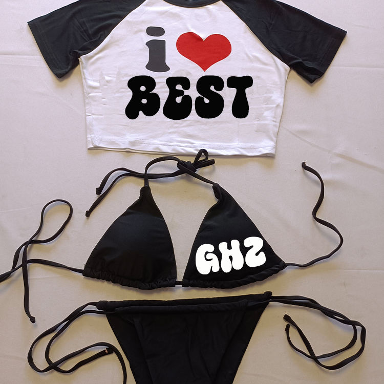 Maillot de bain pour femmes LOGO personnalisé Fitness Maillot de bain sexy Ensemble 3 pièces Micro mini bikini Baby Tee T-shirt Ensemble de maillots de bain de luxe 2026