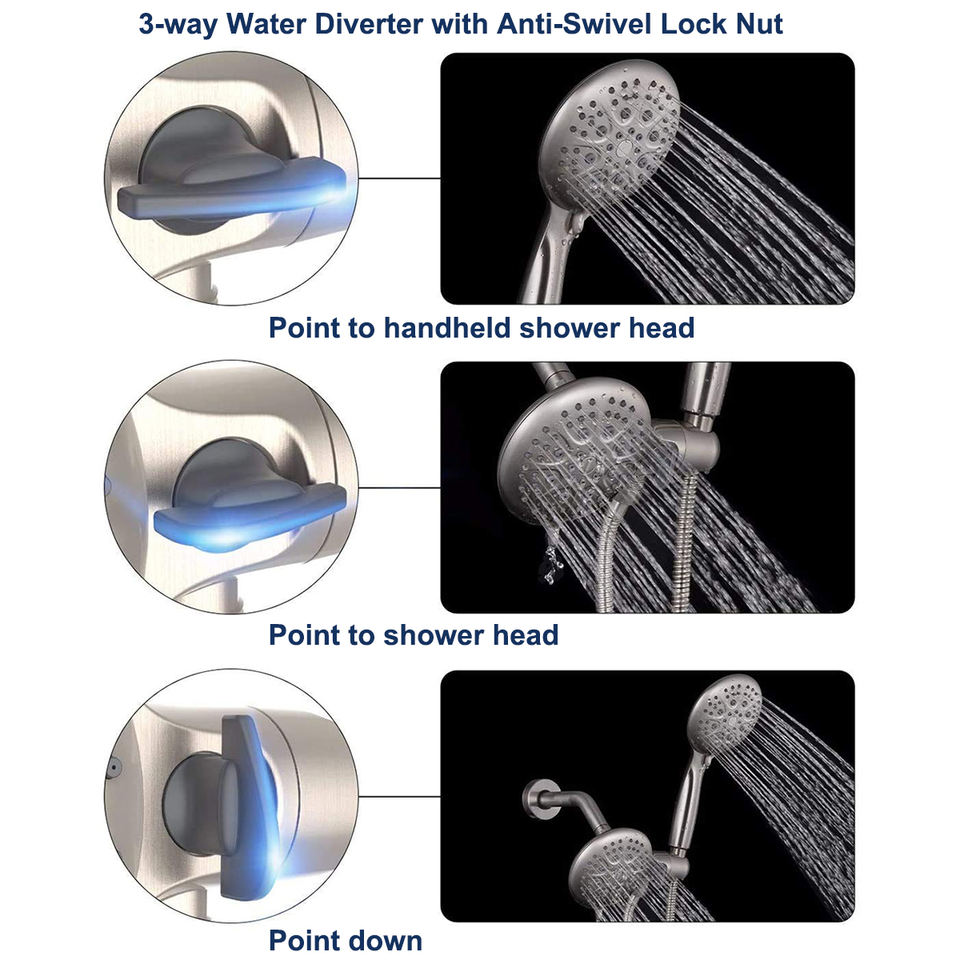 Système de douche double 2 en 1 avec pomme de douche à main et bec de baignoire à réglage 35