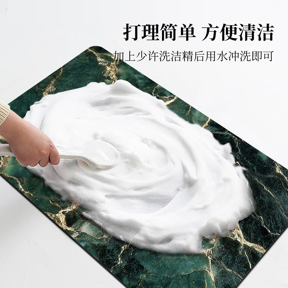 Tapis de salle de bain absorbant rectangulaire en céramique céladon avec design minimaliste doré flottant, antidérapant et à séchage rapide