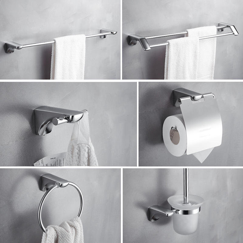 Ensemble d'accessoires de salle de bain moderne en alliage de zinc finition chromée 60 cm : Porte-serviettes, porte-rouleau de papier toilette et support mural pour serviettes