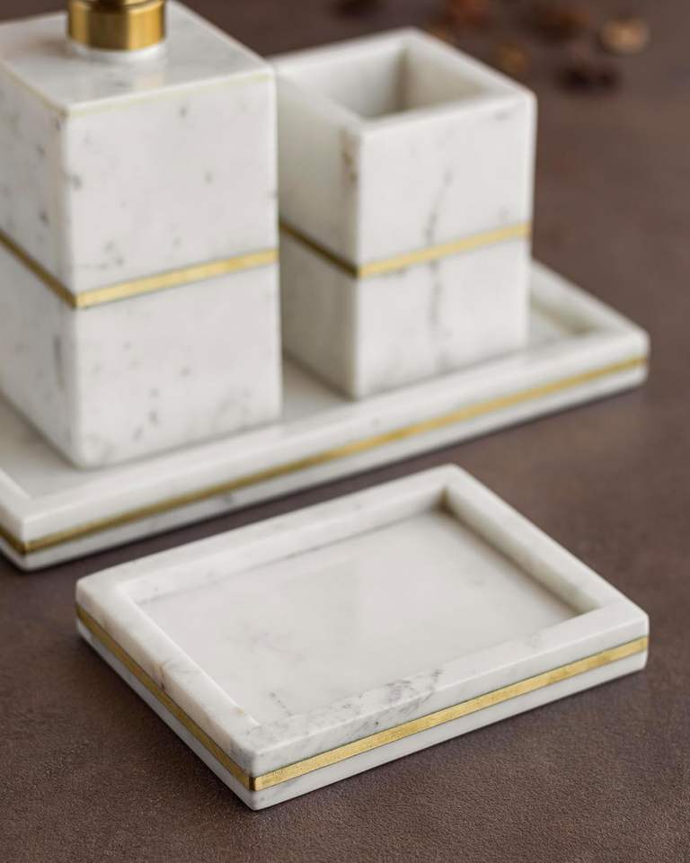 Ensemble d'accessoires de salle de bain marbre blanc couleur résine Art 4 pièces ensemble distributeur de savon, gobelet, porte-savon, porte-brosse pour salle de bain