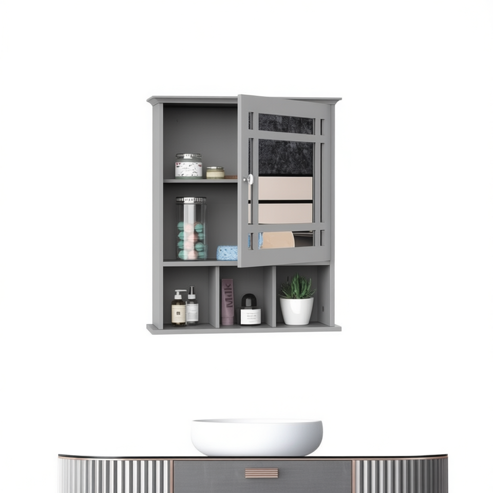 Armoire de salle de bain avec miroir, étagère murale en bois de 24 pouces, design élégant pour la décoration de la salle de bain