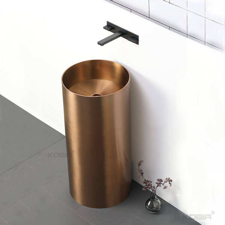 Évier d'angle simple rond pour salle de bain, couleur cuivre, en acier inoxydable, pour évier à linge, SUS 304