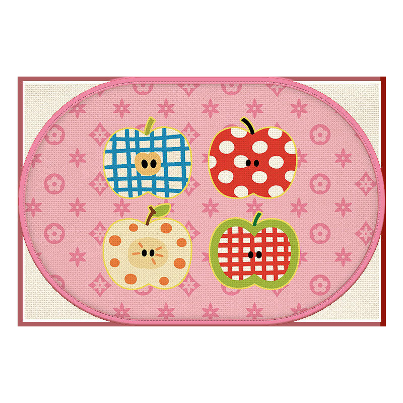 Tapis de salle de bain ovale antidérapant absorbant motif pomme de dessin animé rose pour salle de bain et balcon, lavable en machine