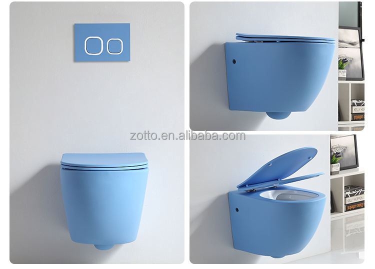 WC suspendu facile à nettoyer avec réservoir d'eau dissimulé, coloré, pour hôtel, maison, villa