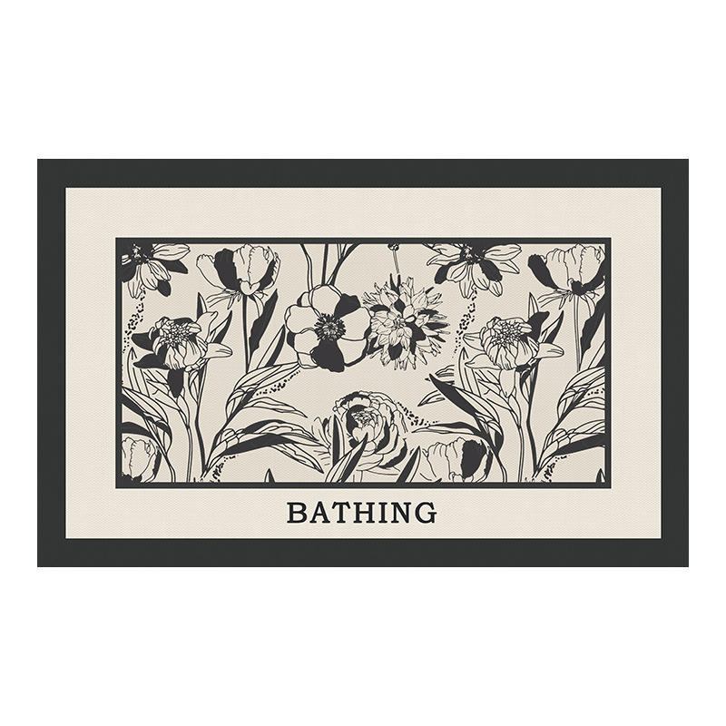 Tapis de salle de bain rectangulaire à motif floral, absorbant, antidérapant, en fibre de polyester, design minimaliste pour salles de bain