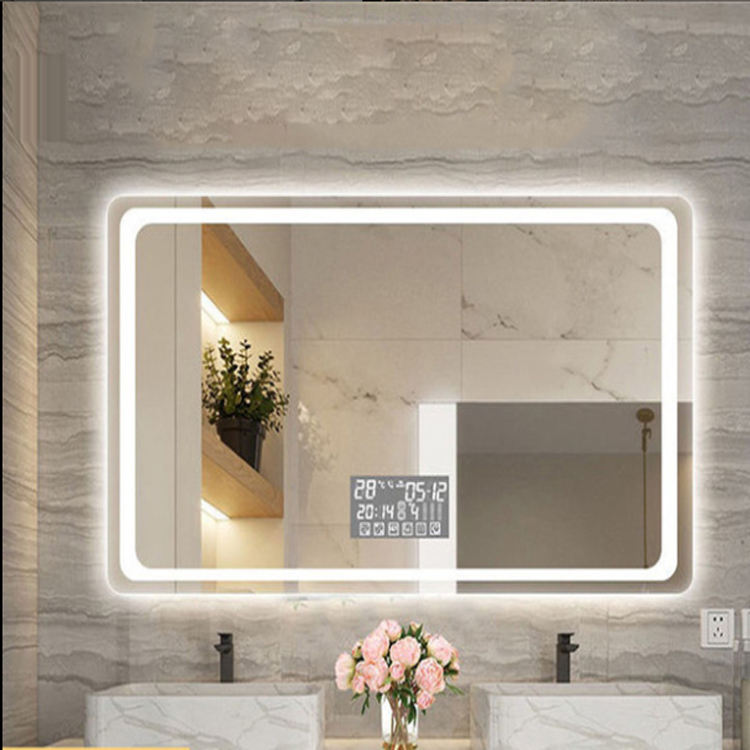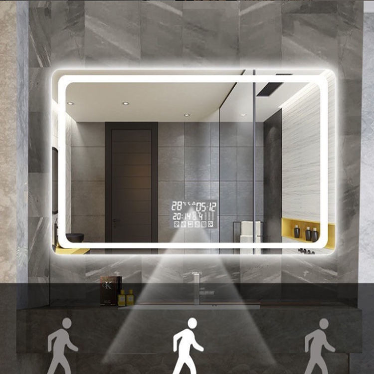 Miroir de salle de bains lampe carrée intelligente miroir de maquillage lumière Villa hôtel Led anti-buée étanche PIR heure Date température spectacle