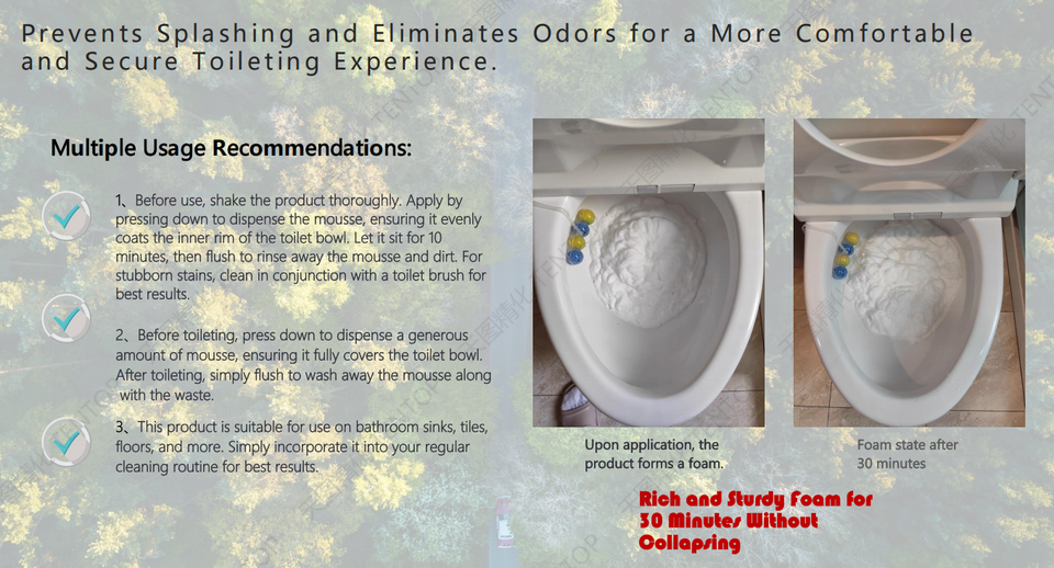 Numéro de Type:Toilet anti-splash odor-removing mousse spray
