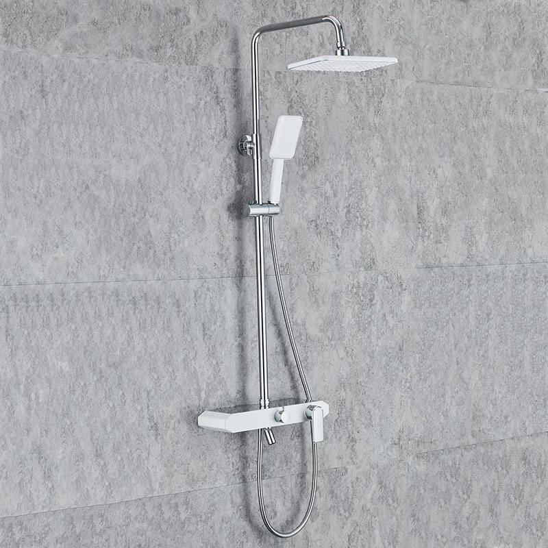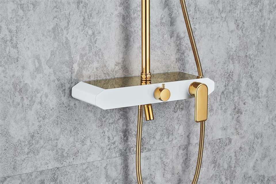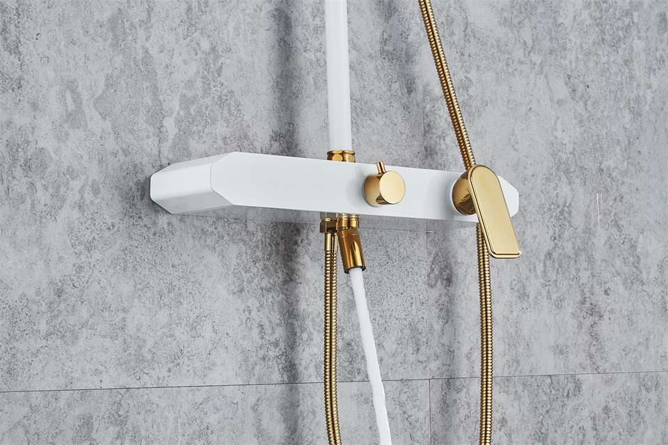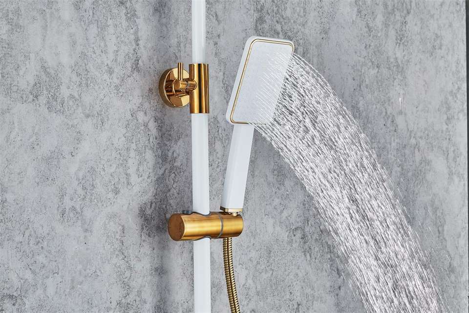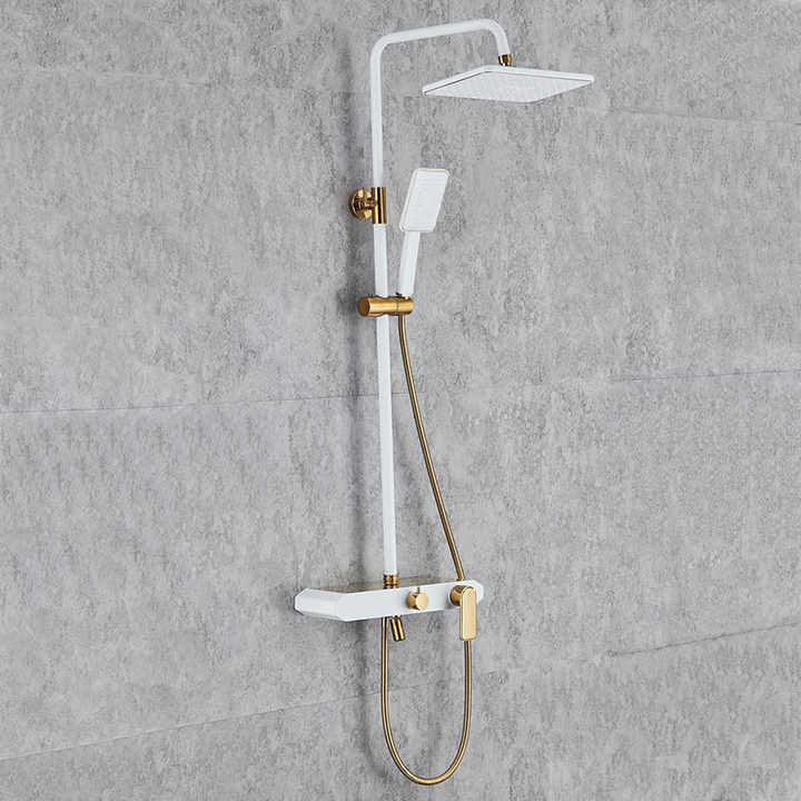 Ensembles de rideaux de douche pour salle de bains Ensemble de pommeau de douche à effet pluie Blanc + Or Ensemble de douche Mélangeur