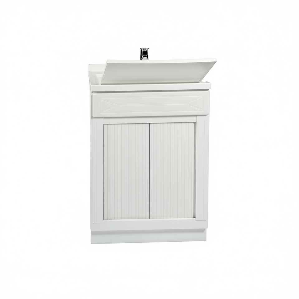 Évier de salle de bain avec porte-éponge, largeur 45 cm, profondeur 50 cm, hauteur 89 cm, pour usage en salle de bain